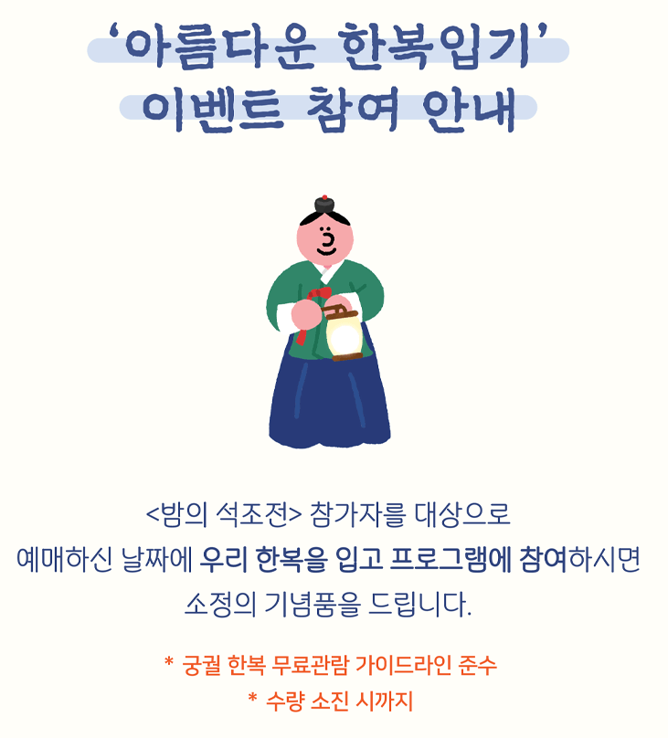 2024년 9월 19일 오후 2시부터 선착순 예매가 진행되고 있습니다. 덕수궁 밤의 석조전에 방문하시려면 필히 예매를 하시고 방문해 주세요. 아래 버튼에서 예약하시기 바랍니다.