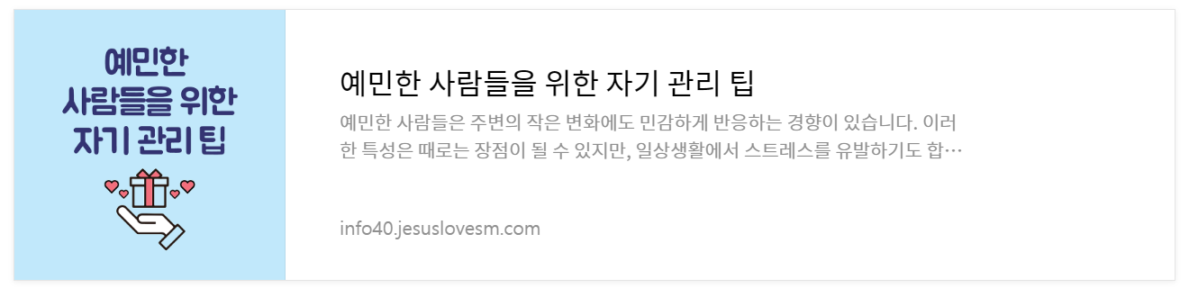 HSP(Highly Sensitive Person)에 대해 더 깊이 이해하고 싶으시다면, 아래 링크를 통해 자세한 정보를 확인해 보세요.